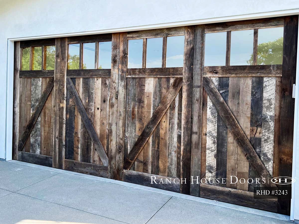 Our Vintage garage doors utilize reclaimed wood to create a rustic finish.